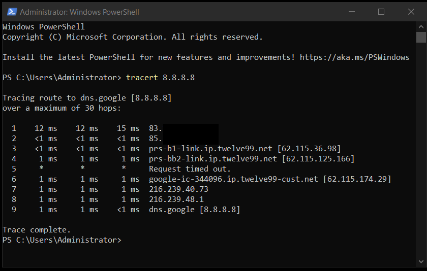 Step 3: Run a traceroute to pinpoint the source of the slowdown.